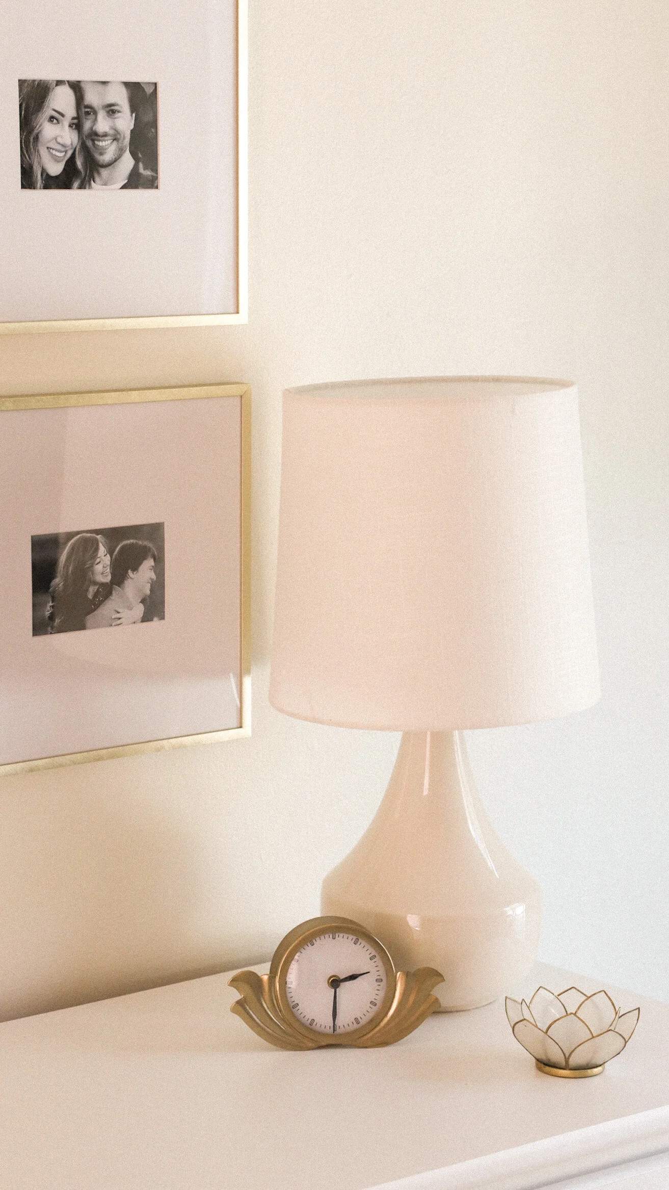 I looked on Pinterest & purchased these nine 12.5" x 12.5" Matted to 4" x 6" Brass Frames that I hung above our dresser in our master bedroom. I’m so happy with the way it looks & it's become one of my absolute favorite spaces in our home.